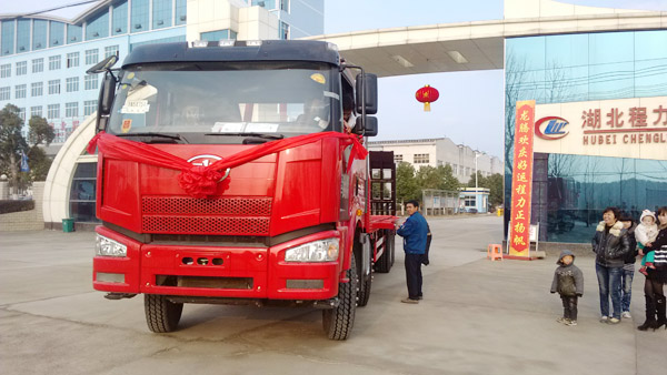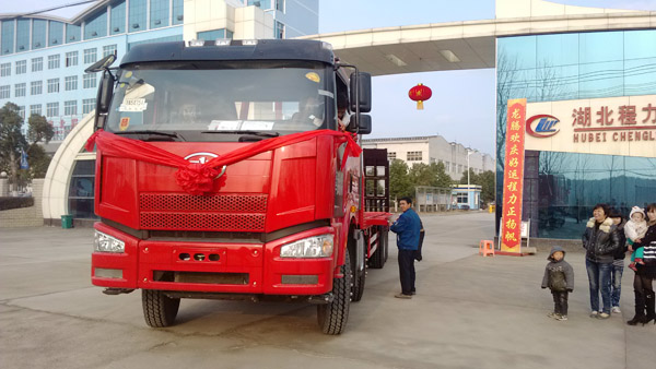 該車于年前客戶定購(gòu),于今天昨日交付給客戶,因?yàn)樵诳蛻粼谖夜巨k理分期付款業(yè)務(wù),在我市上戶,年檢也在我市,客戶對(duì)我們說(shuō):“其實(shí)上我市的牌照還省心些,上客戶當(dāng)?shù)氐呐普漳陮忂€要季審,年審,費(fèi)用也需要3000多,還不如一次性交由我公司來(lái)年審,省時(shí)省心!”。今天客戶在我市辦理上牌手續(xù)及辦理營(yíng)運(yùn)證。于晚上客戶提車走??蛻魧?duì)這輛解放J6前四后八平板運(yùn)輸車非常滿意。