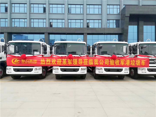 某軍港領(lǐng)導(dǎo)蒞臨我公司驗(yàn)收13輛軍港壓縮式垃圾車,程力產(chǎn)品,軍工品質(zhì)。
