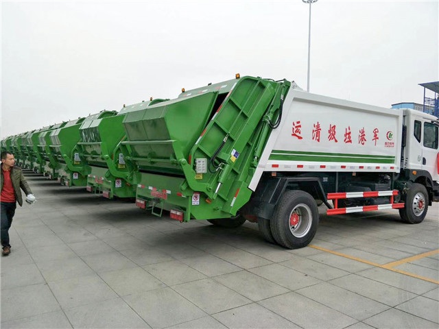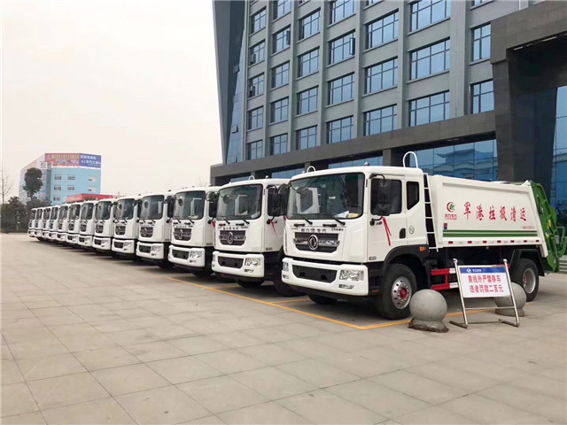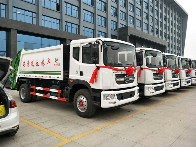 此次軍港采購的這些壓縮式垃圾車采用東風(fēng)多利卡D9系列駕駛室底盤改裝,垃圾箱容積12立方米,康明斯180馬力發(fā)動機(jī),后帶斗翻轉(zhuǎn)機(jī)構(gòu),帶PLC一鍵控制,操作方便。