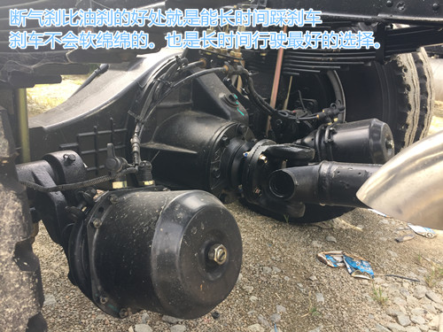 本車還有很多防護(hù)措施,列如對(duì)電瓶就防護(hù)的非常好,上面采用的是密封式蓋子,能擋風(fēng)擋雨,防曬,防小偷,電瓶旁邊是兩個(gè)氣缸,這兩個(gè)氣缸就是斷氣剎儲(chǔ)存氣用的,只要壓力達(dá)到6才能起步,才能才剎車,斷氣剎比油剎的好處就是能長(zhǎng)時(shí)間踩剎車,剎車不會(huì)軟綿綿的。也是長(zhǎng)時(shí)間行駛最好的選擇。