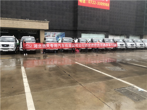 今天就給大家展示一下我們?yōu)⑺噺S家批量生產(chǎn)的灑水車是什么樣的;