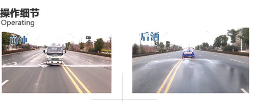 灑水車前噴頭位置較低,靠近地面,噴灑壓力較大,可用于沖洗路面;灑水車后噴頭一般左右安裝一個,其位置較高,故灑水面較寬,用于公路施工灑水。使用后噴時,應(yīng)將前噴管關(guān)閉,使用可調(diào)噴頭灑水時,灑水寬度可以根據(jù)需要調(diào)整。灑水寬度越寬,中間重疊量越少,灑水密度越均勻。