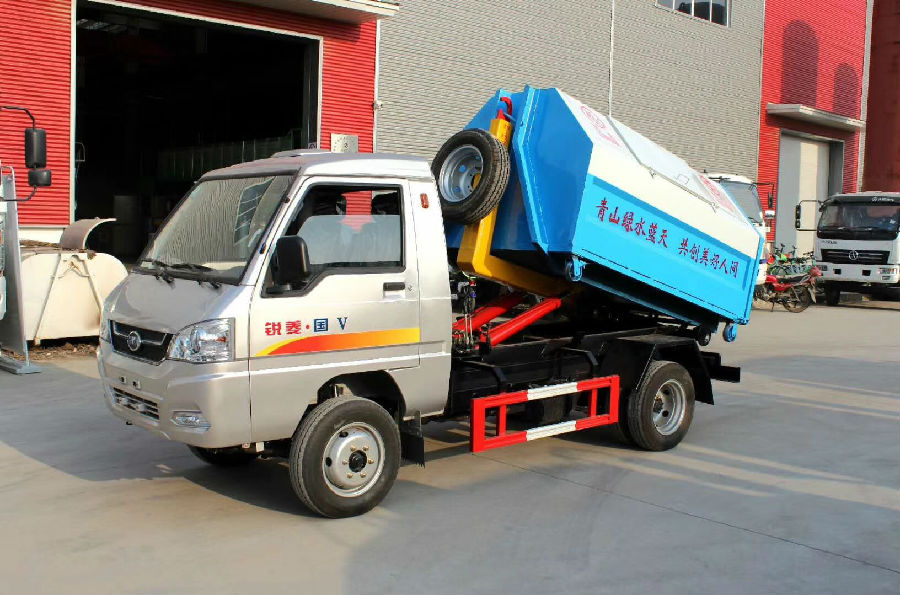 勾臂式垃圾車(chē):一輛車(chē)可以配多個(gè)垃圾斗,垃圾斗可整個(gè)卸下來(lái)放在小區(qū)或路邊,收集一片區(qū)域的垃圾。當(dāng)垃圾收集滿后由勾臂垃圾車(chē)將垃圾斗鉤上,運(yùn)至垃圾處理站卸掉,有自卸功能。然后將空垃圾斗運(yùn)會(huì)垃圾收集地點(diǎn),這樣循環(huán)使用。