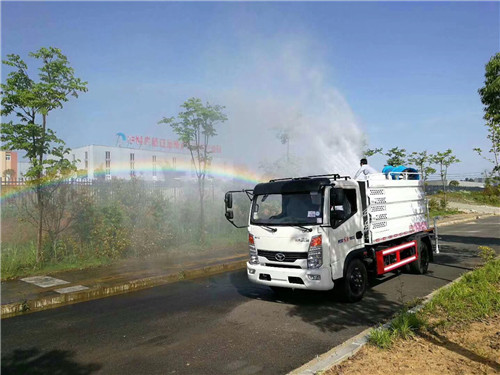 霧炮車又稱為:抑塵車、噴藥車。霧炮車噴射的水霧顆粒達到微米級,能有效分解空氣中的污染顆粒物、塵埃等,在霧霾天氣下用于降塵除霧,可以有效的緩解霧霾,其節(jié)水的特性同樣也可以用作灑水車使用。霧炮車還可以降塵、灑水,把樹上的灰塵洗掉。霧炮車噴灑出的水霧與懸浮在空氣中的PM2.5和PM10粉塵顆粒吸附、聚合、沉降,達到消除污染物和減霾的目的。盡管霧炮口徑巨大,但其噴灑耗水量僅為傳統(tǒng)灑水車的兩到三成,覆蓋面積和除塵效率卻高出20倍。既提高效率,也避免路面積水影響交通。