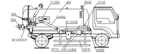 高壓清洗吸污車(chē)回油箱位于車(chē)架右中部,左通油氣分離器,右連四通閥。
