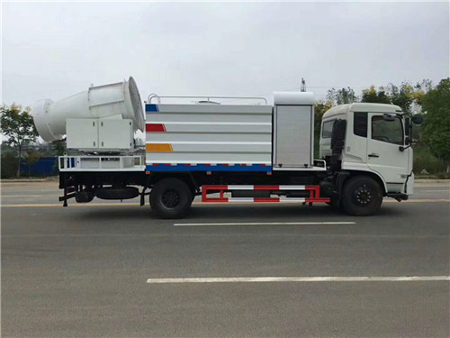 東風(fēng)12噸灑水車(chē)選配50米噴霧機(jī)達(dá)到除塵效果。霧炮機(jī)是根據(jù)風(fēng)送原理,先使用進(jìn)口高壓泵、微細(xì)霧化噴嘴將水霧化,再利用風(fēng)機(jī)風(fēng)量和風(fēng)壓將霧化后的水霧送到較遠(yuǎn)距離,使得水霧到達(dá)較遠(yuǎn)距離同時(shí)能夠覆蓋更大面積,水霧與粉塵凝結(jié)后降落,從而達(dá)到降塵目的。