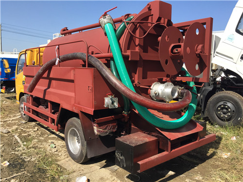 吸污罐體優(yōu)質(zhì)碳鋼板采用5-6mm厚,水罐罐體厚度為4mm厚,高壓泵為德國(guó)品浮,億豐真空油泵或山東美卓SK6水循環(huán)泵,水油分離器,防溢閥,洗手裝置,多路換向閥,真空壓力表,視污窗或視污管,罐體后部出口為100球閥,或150球閥,罐體可液壓舉升,后蓋可液壓打開,吸污管8米。 高壓清洗管60米 帶卷盤。