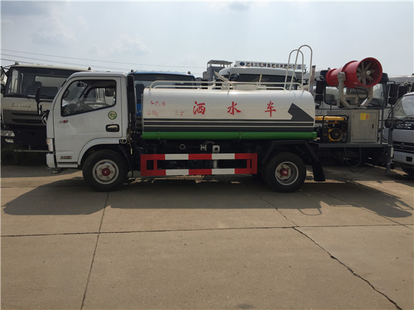 東風(fēng)多利卡抑塵車的基本配置:罐體用4MM碳鋼板制作,罐內(nèi)隔板具有防波作用,以減低東風(fēng)多利卡抑塵車行駛時罐體液體的沖擊。整車帶一個專用灑水泵(垂直最大吸程6米),灑水寬度14米,射程28米。東風(fēng)多利卡抑塵車配備2個前沖(噴)(能將路面泥巴、塵土、垃圾沖干凈);2個后灑(能均勻地將水灑在路面,一次灑水寬度14米)、2個側(cè)噴(花灑)(能均勻地將路旁綠化帶澆灌)、帶1個后工作平臺,平臺上安裝1個綠化灑水高炮(灑水炮可全方位旋轉(zhuǎn),可連續(xù)調(diào)成直沖狀、大雨、小雨、毛毛雨,霧狀可調(diào)節(jié)沖洗高大樹木),引水時間<5min,流量90m3/h。帶1個消防接頭,帶1個自流閥,1個過濾裝置、人性化爬梯及側(cè)防護(hù)欄,安裝灑水音樂喇叭。