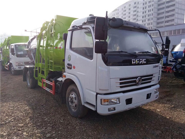 餐廚垃圾車是一種后裝式的餐廚垃圾車,它的填裝機構是以擺臂的方式裝載垃圾,依靠擺臂的升降將垃圾斗里的垃圾倒入車廂內。通用的垃圾斗容量較大,但缺點是垃圾斗必須是專用型的,優(yōu)點是集擺臂進料、垃圾壓縮、垃圾收集于一體。