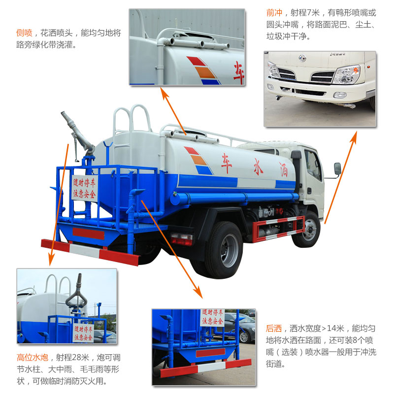 用戶可自帶底盤(pán)我廠提供上裝部件的生產(chǎn)改裝,我生產(chǎn)的灑水車(chē)均為多功能綠化噴灑車(chē),可滿足不同用戶在不同的使用環(huán)境中使用: