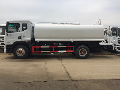 其它 | 罐體有效容積:13.26立方米.罐體外形尺寸(長×長軸×短軸)(mm): 6140×2200×1470.軸距與后懸與離去角對應(yīng)關(guān)系為4325+1350/2345/15;4300+1400/2320/13.隨底盤選裝駕駛室.側(cè)、后防護裝置材料材質(zhì):Q235B,連接方式:螺栓連接,后部防護裝置斷面尺寸(寬×高)60×100(mm),后部防護離地高度:540mm.ABS系統(tǒng)型號為4460046300,生產(chǎn)企業(yè)為威伯科汽車控制系統(tǒng)(中國)有限公司.水罐內(nèi)的水通過灑水泵加壓,經(jīng)水炮,灑水噴頭將水噴出用于清洗街道或給綠化帶澆水. |