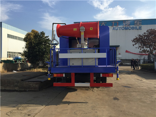 罐體后帶工作平臺,平臺上安裝的有綠化灑水炮,灑水炮和消防炮都能夠全方位360度旋轉(zhuǎn),噴水分別可以調(diào)成直流狀、霧狀、小雨、毛毛雨??蛻艨梢詮奈酱蛩缴?,仰射,把水狀調(diào)致流狀、霧狀、小雨、毛毛雨等做了全方位的操作演練,并且打開報警裝置的操作示范,如果您的所在地在北方,那我們還可以在水泵處加裝加熱裝置,避免冬天溫度過低凍水現(xiàn)象的發(fā)生。