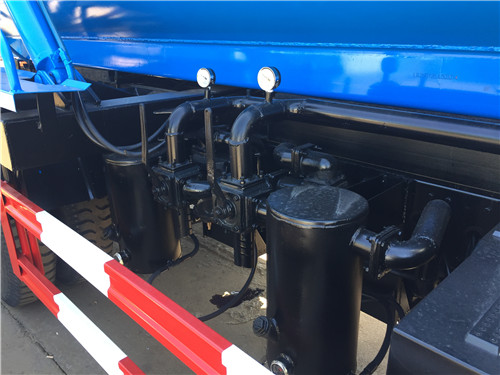 四通閥分別與容罐、真空泵、回油箱大氣相通。四通閥內(nèi)設(shè)有隔板。改變真空泵的吸氣方向,當四通閥將容罐與真空泵相連時,吸污車即可進行排卸作業(yè)。