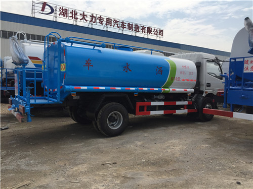 第八款不上牌9.5噸東風(fēng)灑水車底盤采用東風(fēng)大多利卡(十堰產(chǎn)),3800mm軸距,帶動轉(zhuǎn),7.5尼龍?zhí)ィ瑲鈩x,電子熄火。前沖后灑,后工作平臺帶高炮,右位花灑,側(cè)噴。罐體9.2噸,金龍泵,前沖后灑,后工作平臺帶高炮,右位花灑,側(cè)噴。