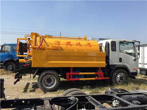 上裝配置:罐體采用優(yōu)質(zhì)Q235武鋼5mm碳鋼制作,罐體采用一次壓鑄成型,封頭6mm,吸污罐體容積4方,水罐2方,帶視污窗,安裝有防溢閥,億豐真空泵或SK-6水環(huán)式真空泵,帶6米內(nèi)鋼絲防變形吸污管,配100mm排污球閥,罐體帶液壓舉升系統(tǒng),后蓋液壓打開、關(guān)閉。罐體內(nèi)有隔襯板,防止吸污罐變形。