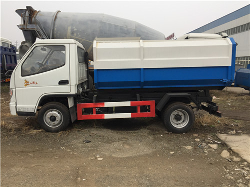 該掛桶式垃圾車的收運方式是目前國內(nèi)泛采用的垃圾收集轉(zhuǎn)運方式,其專用裝置的功能均以汽車發(fā)動機為動力,通過液壓機構(gòu)手動或電控、氣控來實現(xiàn)。車輛的箱體采用優(yōu)質(zhì)炭鋼板全密封焊接結(jié)構(gòu),具有強度高、重量輕,防塵、防溢不產(chǎn)生二次污染等優(yōu)點。