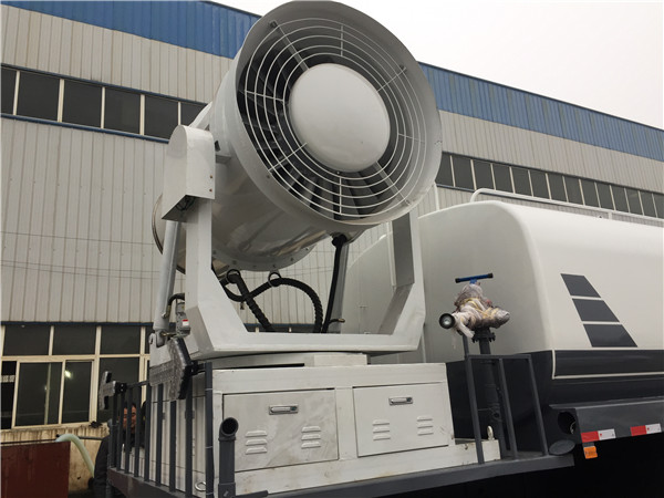 一種就是城市里面使用的抑塵車,抑塵車又稱為:霧炮車、噴藥車。霧炮車噴射的水霧顆粒達(dá)到微米級(jí),能有效分解空氣中的污染顆粒物、塵埃等,在霧霾天氣下用于降塵除霧,可以有效的緩解霧霾,其節(jié)水的特性同樣也可以用作灑水車使用。霧炮車還可以降塵、灑水,把樹上的灰塵洗掉。霧炮車噴灑出的水霧與懸浮在空氣中的PM2.5和PM10粉塵顆粒吸附、聚合、沉降,達(dá)到消除污染物和減霾的目的。盡管霧炮口徑巨大,但其噴灑耗水量?jī)H為傳統(tǒng)灑水車的兩到三成,覆蓋面積和除塵效率卻高出20倍。既提高效率,也避免路面積水影響交通。