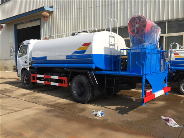 東風(fēng)福瑞卡灑水車(chē)前裝有鴨形噴嘴或圓頭沖嘴,灑水車(chē)后面裝有圓柱開(kāi)灑水噴嘴或蓮蓬頭噴嘴,后部有一工作平臺(tái),裝配有水炮。后部還可裝8個(gè)噴嘴(選裝)噴水器一般用于沖洗街道,起除塵和降溫作用,其噴水器可以用調(diào)節(jié)噴嘴螺紋的方法改變噴水器的噴灑方向和角度,高射水炮可以用于城鄉(xiāng)園林綠化及應(yīng)急消防。蓮蓬嘴可以澆落路中間噴水器沖起的灰塵,起到清潔空氣的作用。