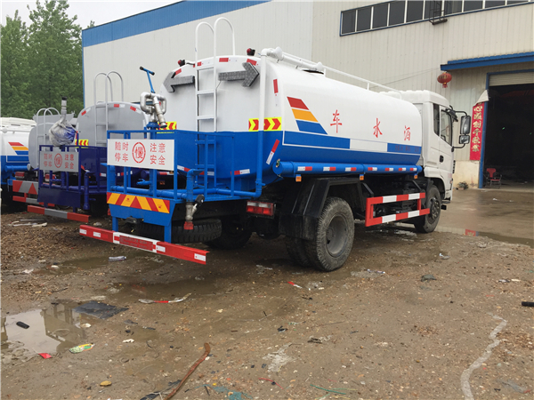 4、東風福瑞卡5噸灑水車的維護與安全:灑水車底盤和發(fā)動機部分的使用和保養(yǎng),按載重灑水車使用說明書執(zhí)行。水泵的使用和保養(yǎng),嚴格按其使用維護說明書執(zhí)行。水源不能有過多雜質,過濾器網(wǎng)應該經(jīng)常拆洗。冬季來臨前,灑水車應將水泵和水管內的水放空,以防凍裂。灑水車吸水時進水管系統(tǒng)必須保持一定的真空度,才能將水吸入箱內,故進水管系統(tǒng)務必密封可靠.每次工作完畢后,均應將各閥門手柄扳至關閉狀態(tài)。各閥門一般不應處于半開狀態(tài),以免影響密封性能。每次工作完畢后,均應及時蓋上進、出口外端的堵蓋。水裝載量不宜超過額定裝載質量。