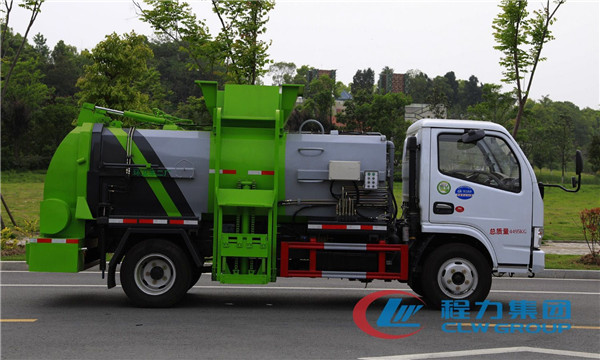 餐廚垃圾車種類及簡易介紹:1、自卸式餐廚垃圾車――又稱為:垃圾收集車,可用于沿街定時收集生活餐廚垃圾; 2、擺臂式餐廚垃圾車――分為地面式和地坑式二種,擺臂餐廚垃圾斗有方形和船式二種; 3、密封式餐廚垃圾車――密封蓋式、前滑蓋式、液壓翻蓋式餐廚垃圾車; 4、掛桶式餐廚垃圾車――又稱:自裝卸式餐廚垃圾車,可配合國標(biāo)鐵制或塑料餐廚垃圾桶使用; 5、拉臂式餐廚垃圾車――又稱:勾臂式餐廚垃圾車、車廂可卸式餐廚垃圾車,目前較為暢銷的餐廚垃圾車型; 6、壓縮式餐廚垃圾車――分為側(cè)裝式、后裝式二種,餐廚垃圾壓縮能力強(qiáng),效率較高。 7、對接式餐廚垃圾車――又稱:餐廚垃圾塊運(yùn)輸車,一般與壓縮餐廚垃圾站配合使用。 8、餐廚垃圾車――又稱:泔水車,主要用于廚余垃圾收集與運(yùn)輸。 ⑨ 方便的操作控制 作業(yè)控制盒分別安裝在駕駛室內(nèi)和車尾,駕駛室內(nèi)的作業(yè)控制盒可控制推擠卸料和選擇操作模式(如自動或手動),車尾的作業(yè)控制盒則控制壓填機(jī)構(gòu)和翻桶機(jī)構(gòu)的作業(yè),使用操作十分方便。特別是在垃圾填埋場,作業(yè)人員無須下車即可完成卸料和污水排放。⑩ 高質(zhì)量的元件 電氣、液壓系統(tǒng)的關(guān)鍵元器件均采用進(jìn)口知名元件,如PLC、壓力傳感器、按鈕、油缸密封件等,提高了餐廚垃圾車的使用可靠性。