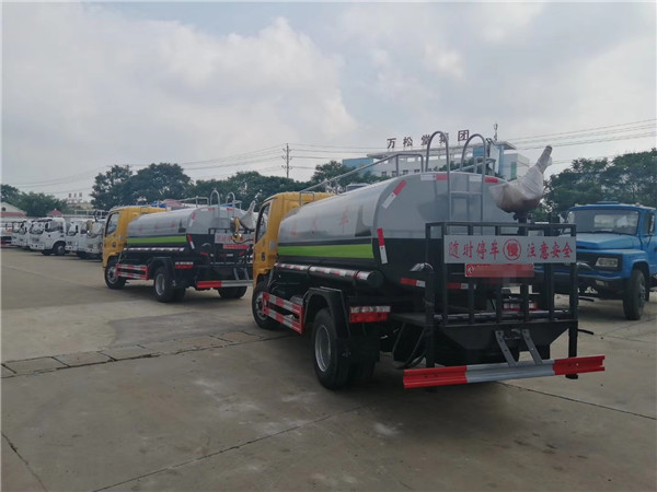 上裝配置:罐體容積:4.5立方(裝水4.5噸),罐體鋼板采用Q235碳鋼鋼材,前沖后灑、側(cè)噴、平臺高炮、自流閥及消防接頭各1個、水管2根、標配億豐泵或金龍泵,霧炮機可選裝20-35米,