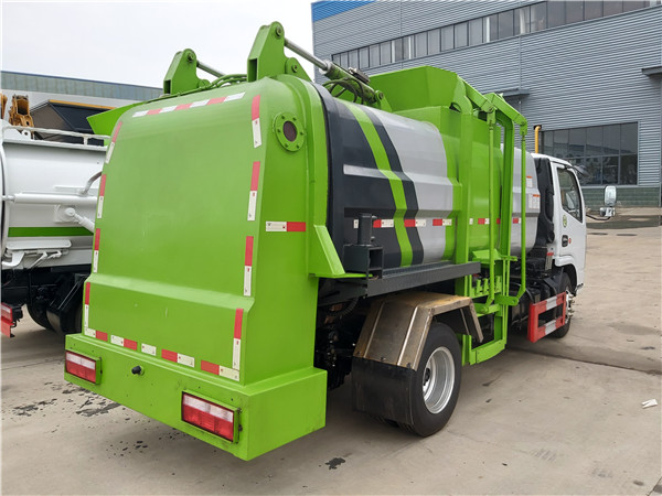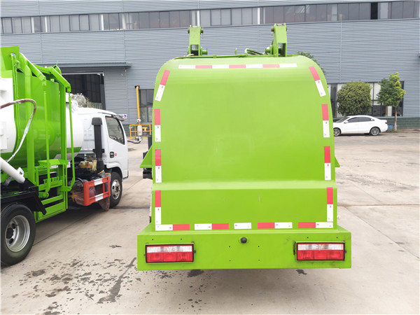 當然,污水最終要從這一臨時空間中排除,不能在廂體前部積垢,則要求推板與廂體底板之間留有合適的間隙,通常為20mm左右,可以保證污水區(qū)的污水能夠緩慢流出。廂體設(shè)計通常使廂體底板與車架留有1°~3°的夾角,裝載垃圾時,夾角的存在可以使污水緩慢流向污水箱(前提是污水箱還有空間)。要讓污水能流人污水箱,通過結(jié)構(gòu)設(shè)計能夠滿足要求,與貼合面密封膠條不存在必然的關(guān)系。