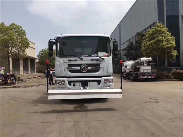 灑水車加裝高壓清洗前噴頭位置較低,靠近地面,噴灑壓力較大,可用于沖洗路面;灑水車后噴頭一般左右安裝一個,其位置較高,故灑水面較寬,用于公路施工灑水。使用后噴時,應(yīng)將前噴管關(guān)閉,使用可調(diào)噴頭灑水時,灑水寬度可以根據(jù)需要調(diào)整。灑水寬度越寬,中間重疊量越少,灑水密度越均勻。