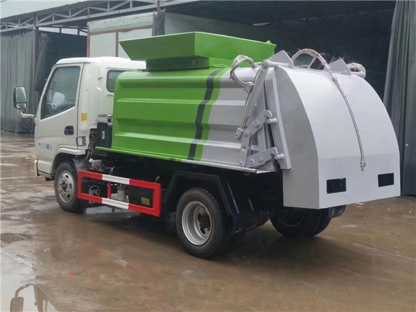 裝料裝置:自動提升裝料裝置設(shè)在廂體的前部右側(cè)面,由支架、鏈條機(jī)構(gòu)、掛鉤等組成。使用此裝置可將垃圾桶內(nèi)的垃圾自動提升裝入廂體內(nèi)。