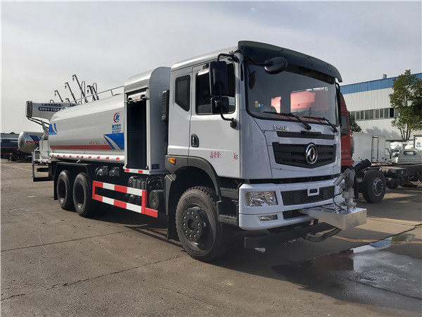 6、東風(fēng)灑水車采用氣動裝置,可在駕駛室內(nèi)控制出水。具有前沖、后灑、側(cè)噴、后工作平臺,高壓綠化水炮。