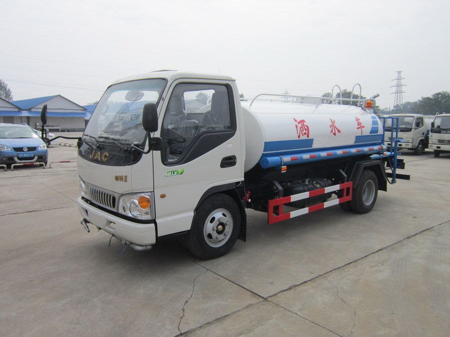 3、江淮灑水車(5噸)采用江淮康玲底盤,白色可前翻駕駛室,江淮朝柴116馬力國(guó)五發(fā)動(dòng)機(jī),5擋變速箱,軸距3360mm,3.5噸后橋,7.00-16原廠尼龍?zhí)?,原廠abs,帶方向助力,離合助力器,氣剎制動(dòng)。