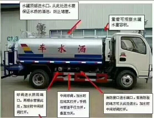 溫馨提示:這種方法不適合在冬季使用,以免灑水車罐體內(nèi)水結(jié)成冰,凍裂泵體或罐體。排污時(shí)請使用位于水箱最低點(diǎn)的排污口。