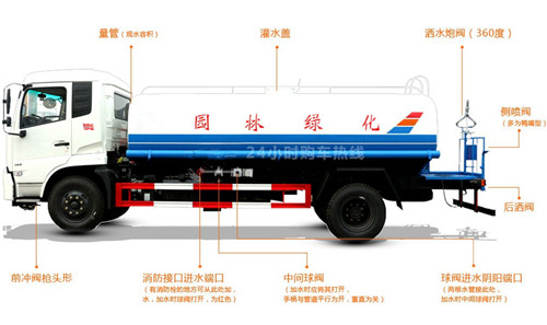 標(biāo)準(zhǔn)配置 東風(fēng)特商灑水車罐體材質(zhì)為厚4mm武鋼優(yōu)質(zhì)板材,灑水泵,灑水高炮,工作平臺(tái),取力器,前沖,后灑,萬(wàn)向嘴,自流閥,濾網(wǎng),分配閥,噴頭,帶自吸自排功能。