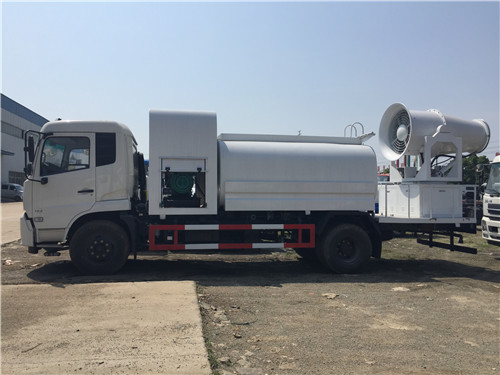 東風(fēng)12噸抑塵車選配50米噴霧機(jī)達(dá)到除塵效果。霧炮機(jī)是根據(jù)風(fēng)送原理,先使用進(jìn)口高壓泵、微細(xì)霧化噴嘴將水霧化,再利用風(fēng)機(jī)風(fēng)量和風(fēng)壓將霧化后的水霧送到較遠(yuǎn)距離,使得水霧到達(dá)較遠(yuǎn)距離同時(shí)能夠覆蓋更大面積,水霧與粉塵凝結(jié)后降落,從而達(dá)到降塵目的。