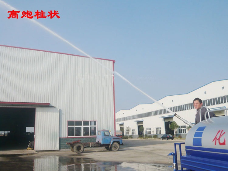 ◆ 灑水車綠化炮功能:綠化高炮位于灑水車的后工作平臺,可360度全方位旋轉(zhuǎn),并可調(diào)節(jié)多種直沖狀、大雨、小雨、毛毛雨、霧狀噴灑、噴射方式--(柱狀射程≥28m;霧狀射程≥15m)。綠化炮霧狀噴灑可用于園林綠化噴灑作業(yè);綠化高炮噴射一般用于沖洗澆灌樹木;綠化炮沖洗一般用于護(hù)欄沖洗、高空建筑物沖洗等.