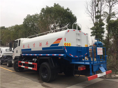 1、灑水車的基本組成:防銹罐體、連通器、專用自吸式灑水泵、管網(wǎng)、噴灑出口、工作平臺、二類底盤。灑水車可選裝配置:GPS、萬向噴頭、電磁閥門、氣動閥門、可視操縱系統(tǒng)、外接動力、藥盤。