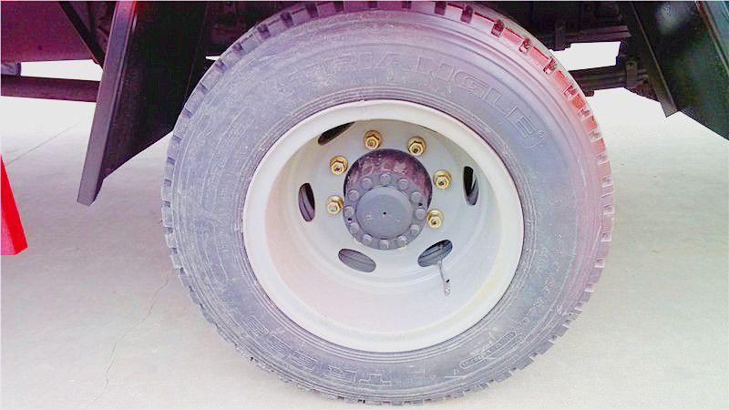 三角的8.25R20鋼絲胎,需要說明的是這是解放廠家隨機(jī)的,不是說每一臺都是三角的,有可能是其它品牌的