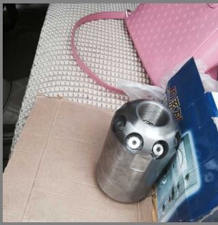 除了直噴頭以外,每個噴頭都有向后的6個噴射孔(一邊穿透、破碎、攪拌堵塞物,一邊推動噴頭和耐高壓水管前進),其中2、3、5、8號另外,還有一個前噴孔(穿刺堵塞物并作為導引孔)。