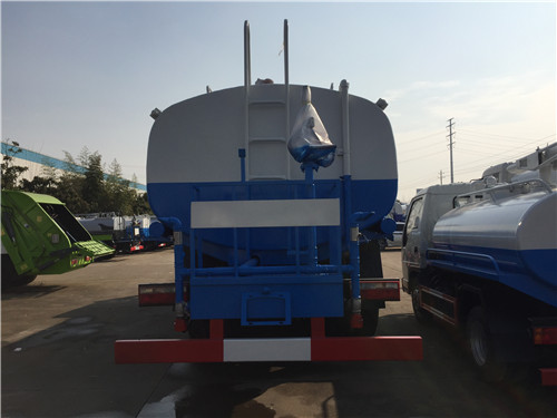 3、側(cè)噴、后灑――位于灑水車后工作平臺左右兩側(cè),側(cè)噴,即向側(cè)面噴灑的裝置,后灑,則是向后部噴灑的裝置,兩者水流形態(tài)都呈扇形,常用于道路壓塵降溫加濕,噴出的水薄而均勻,可避免噴灑后污水橫流的現(xiàn)象。