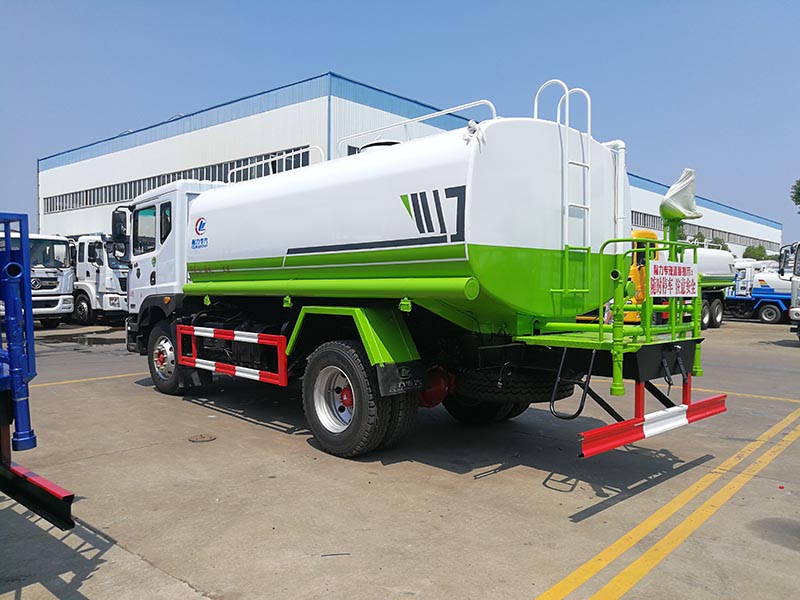 二、上裝配置: 國(guó)內(nèi)三家灑水車生產(chǎn)流水線,其中一條在我公司。罐體由國(guó)標(biāo)5mm厚優(yōu)質(zhì)碳鋼板一次性卷壓成型,二保焊行走小車自動(dòng)焊接,焊縫均勻、美觀,避免了人工焊接的漏焊和虛焊,罐體內(nèi)部加固處理,并設(shè)置防浪板,罐體內(nèi)外做防銹處理,標(biāo)配前沖、后灑、側(cè)噴、后置式工作平臺(tái),平臺(tái)帶踏梯,四周有安全護(hù)欄,平臺(tái)上設(shè)有高壓水炮,可360°旋轉(zhuǎn),可調(diào)成:直沖狀、大雨、中雨、小雨、毛毛雨。3950軸距及以上車型標(biāo)配高位花灑功能。
